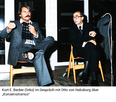 Auf besonderes mediales Interesse stießen auch die Einzelgespräche der Frankenthaler Veranstaltungsreihe – mit Esther Vilar etwa über ihr damals neues Buch „Alt. Manifest gegen die Herrschaft der Jungen“ (1980), mit Mehdi Navab-Motlagh, damals Botschafter der Islamischen Republik Iran in Deutschland, über die Revolution in seinem Land (1981), mit Ephraim Kishon über „Israel“ (1981), mit Erhard Eppler über die „Friedensbewegung“ (1982) oder mit Otto von Habsburg über „Konservatismus“ (1982).